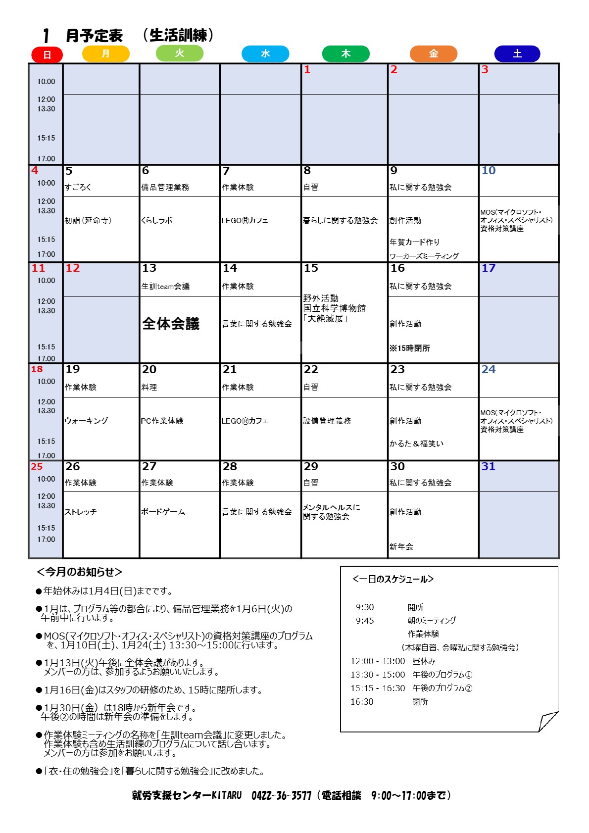 2026.01.01 2026.01.05 2026年1月のプログラムを公開しました 就労移行支援2026年1月 生活訓練2026年1月 Post Share Hatena Line RSS feedly Pin it note 広報誌『KITARU’s COMPASS』2026年1月号を発行しました 前の記事